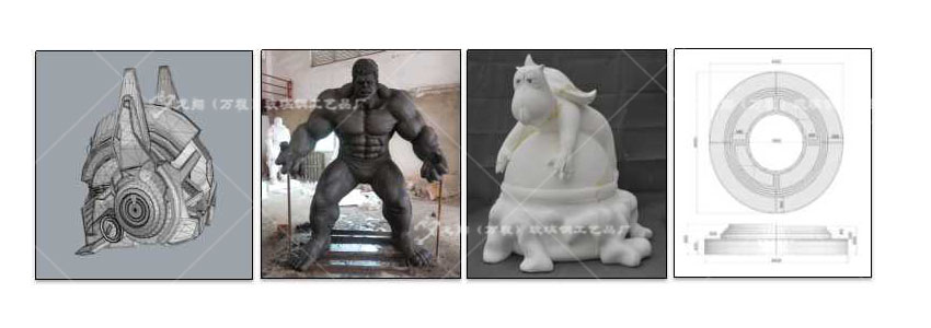 師傅。按照雕塑標準進行雕塑造型。工廠根據造型選定雕塑材質,比如:泥塑,泡沫塑,木塑,GRC,海綿,金屬等一切適