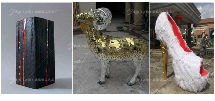 可以在各類造型上粘貼多種種效果及材料 如:不銹鋼、鈦金片、馬賽克、羽毛、貝殼、金銀箔等