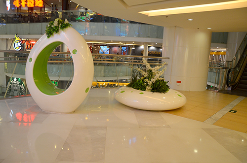 商業美陳雕塑、商業美陳休閑椅、商業美陳花盆去哪里做?美觀的景觀制作,不僅可以為商場帶來不一般的展示效果,同時還可以起到很大廣告的作用,彰顯獨特的創意。